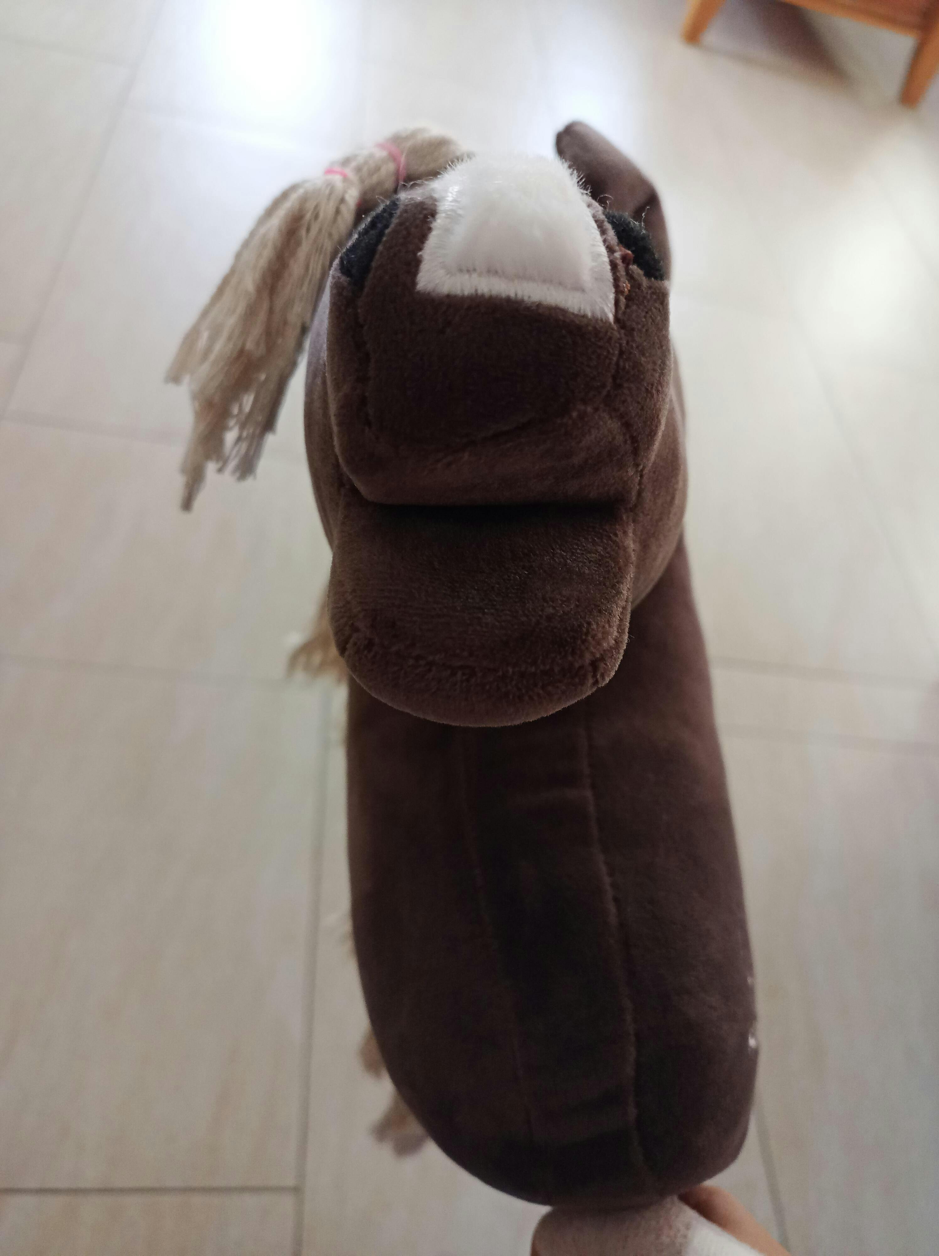 Der Pferdekopf besteht aus weichem Polyester-Plüsch, was nicht nur angenehm in der Hand liegt, sondern auch kindgerecht ist.