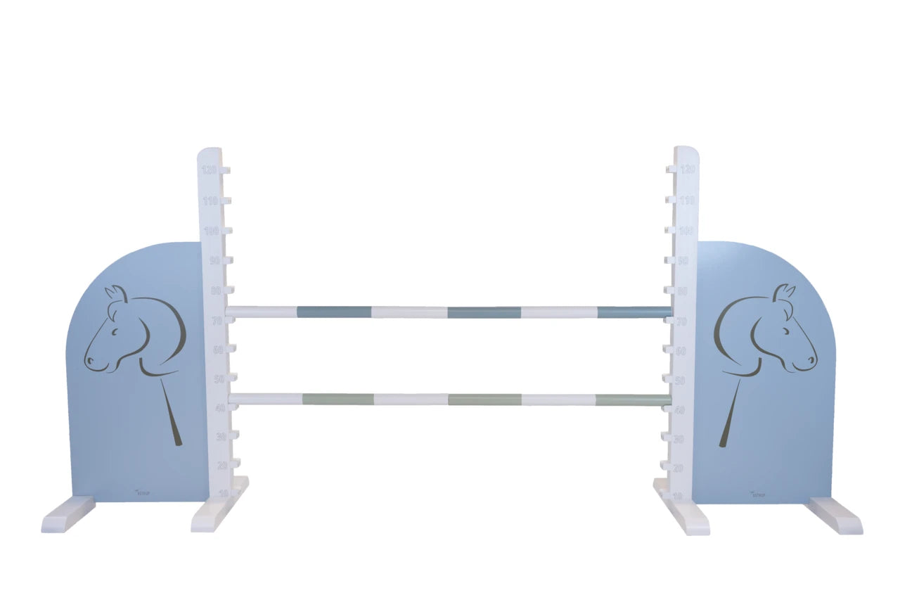 Diese Sprungstange in Weiß-Blau bringt frische Eleganz in jede Hobby Horse Arena. Das sanfte Pastellblau wirkt beruhigend und stilvoll – ideal für Training, Turnier oder fantasievolle Spielstunden.