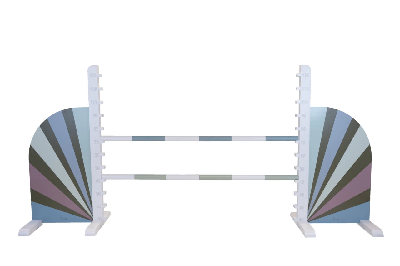 Die Jump Wings mit Streifenmuster bringen einen modernen Look in deinen Hobby-Horse-Parcours! Mit ihrem klaren Linien-Design und den zarten Pastellfarben (z. B. Mint, Rosé oder Blau) wirken sie minimalistisch und gleichzeitig elegant – perfekt für junge Reiterinnen und Reiter mit Stilgefühl.
