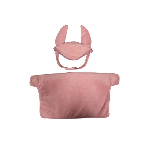 Ob beim Ausritt oder auf dem Turnier – mit dem Turnout-Set in Rosa ist dein Hobby Horse immer bestens gestylt. Die weiche Samtdecke schmiegt sich angenehm an den Körper des Pferdes, während die passende Fliegenhaube mit Klettverschluss unter dem Kinn befestigt wird. Dank verstellbarem Clipverschluss sitzt alles perfekt – ganz ohne Verrutschen.
